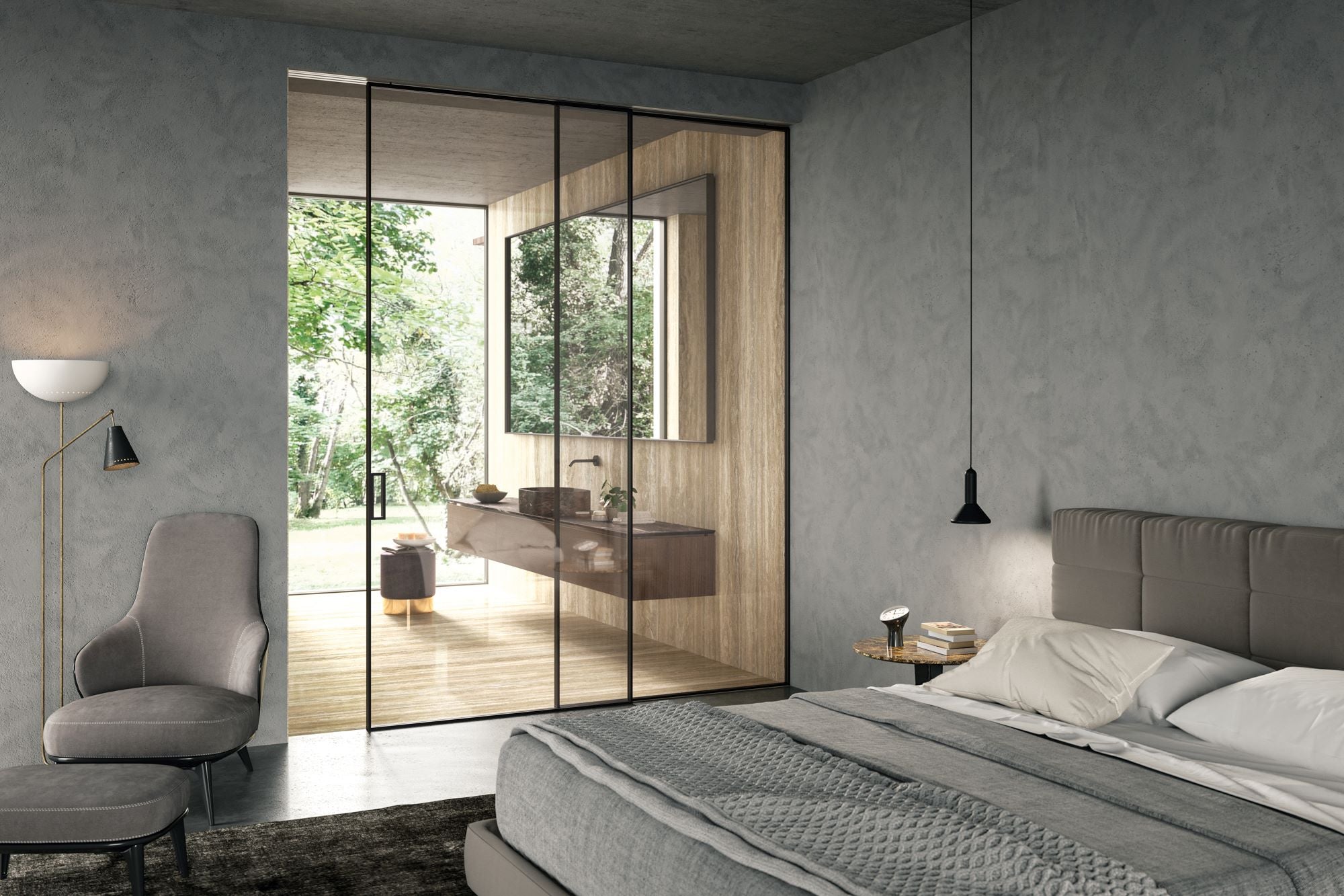 The HenryGlass External Sliding Doors creates an effect of strong visual and spatialcontinuity between the different rooms in the house. These doors feature tracks, along which they slide, that are visible or recessed into false ceilings for a bespoke finish.