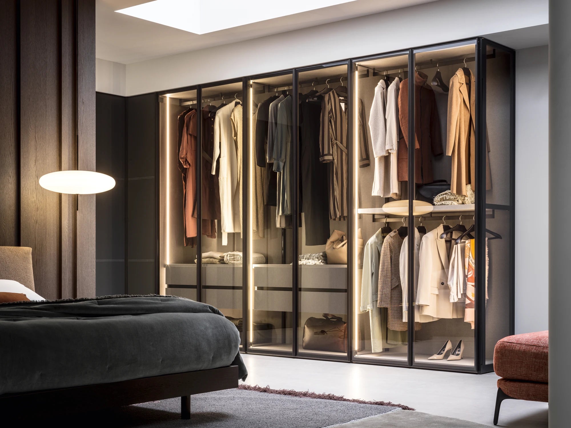 In partnership with Novamobili, we create sophisticated wardrobe systems that combine architectural elegance with intelligent storage.